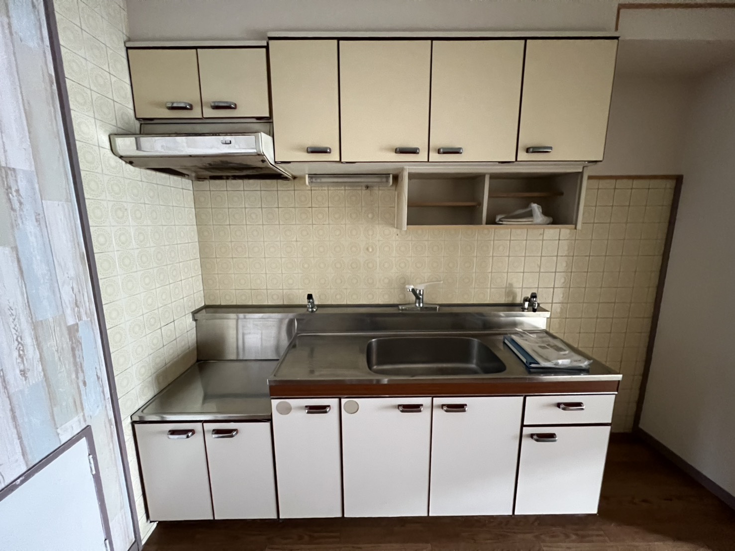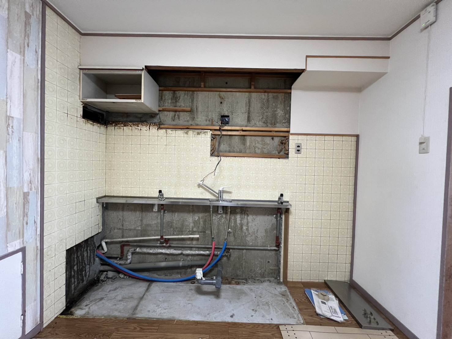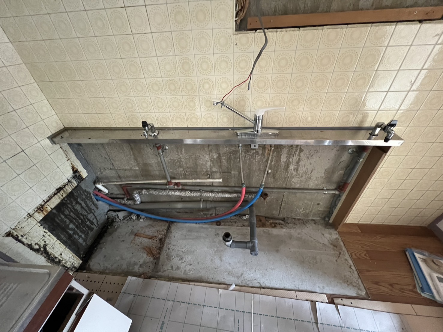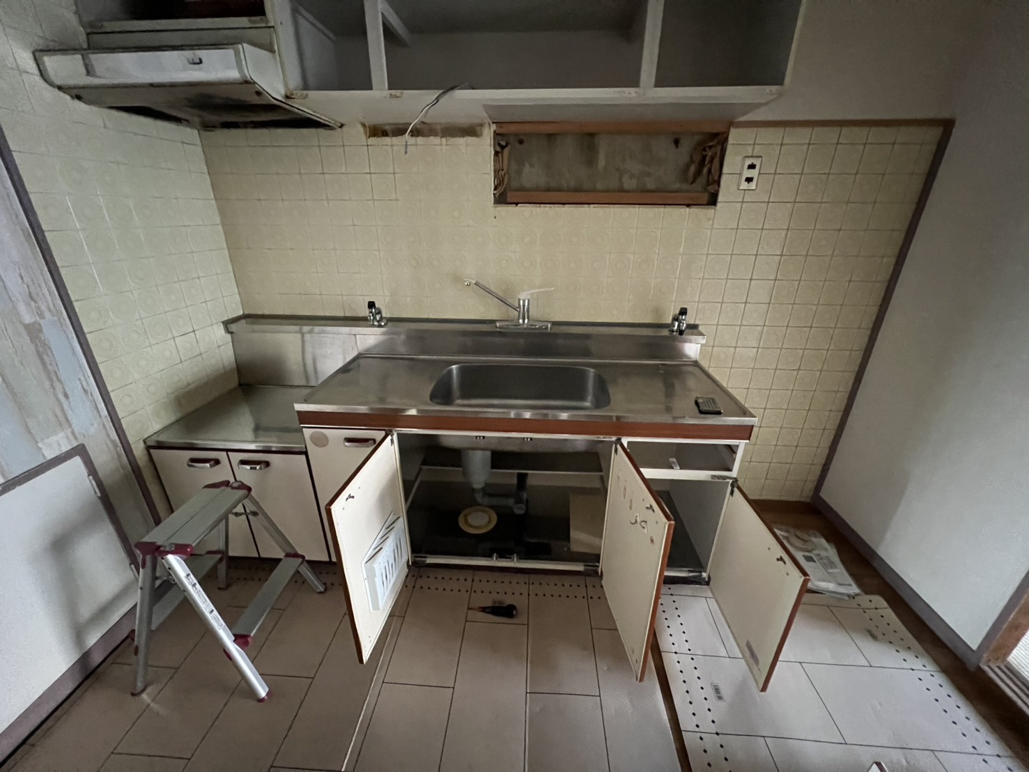 吊り戸棚と下のユニットを外した状態で解体は終了です。