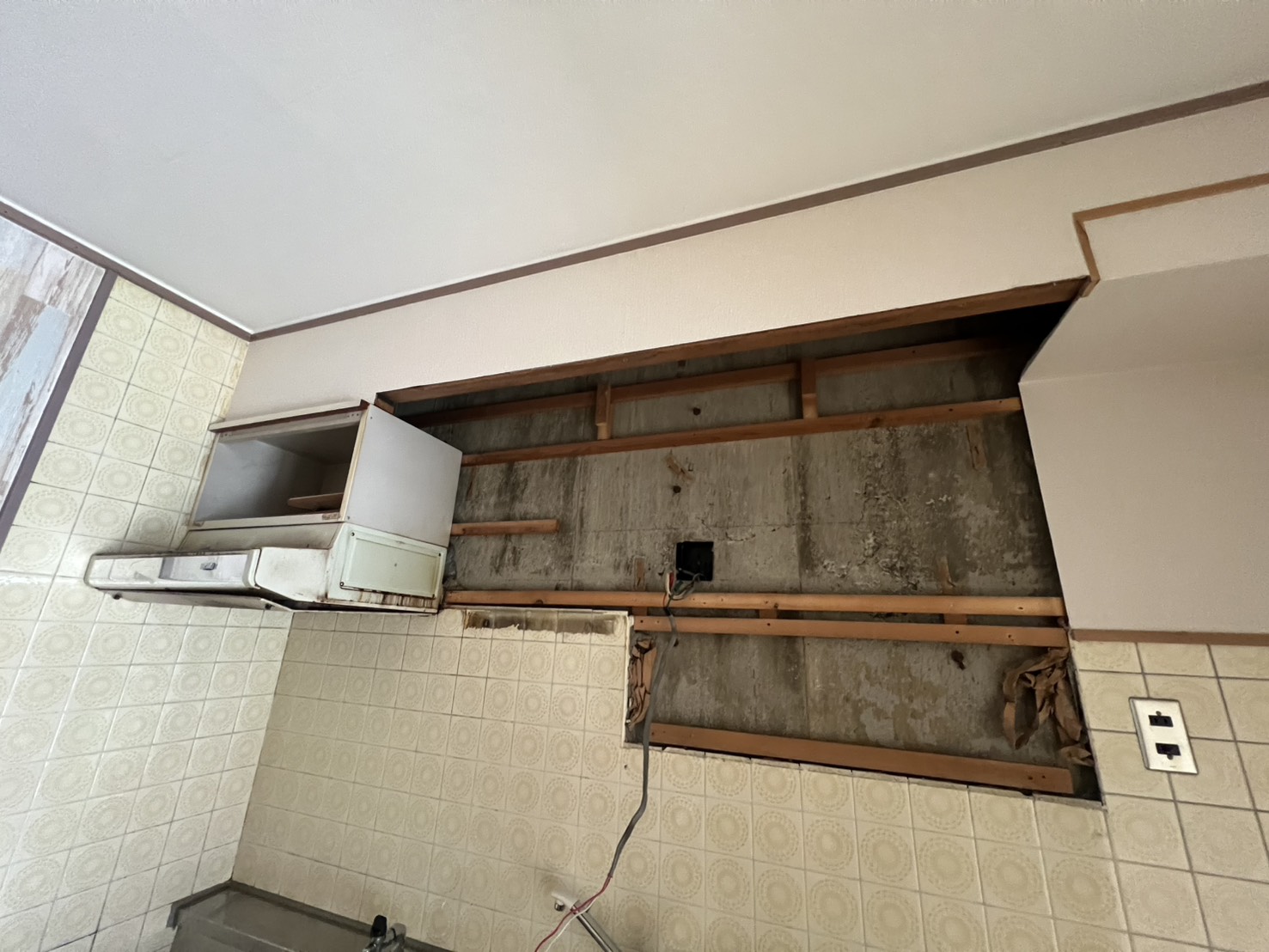 吊り戸棚を外して行くと、コンパネや石膏ボードもない状態でした。